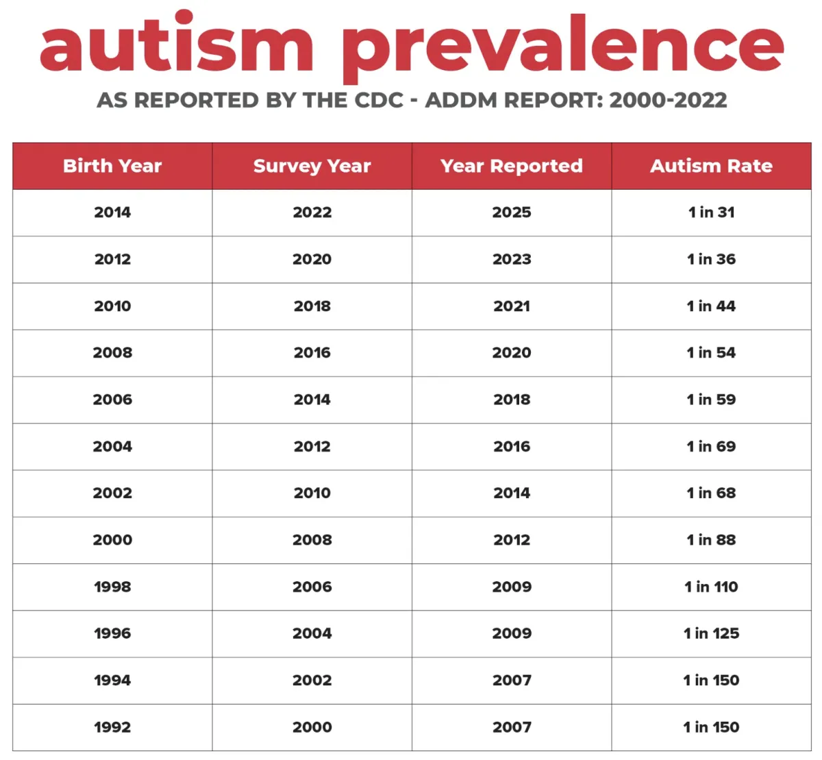 The prevalence of autism is SKYROCKETING. Current research is showing a rate of 1 in 31. This is up 384% since 2020! However, there is hope! For the past 21+ years we've been helping kids with Autism.